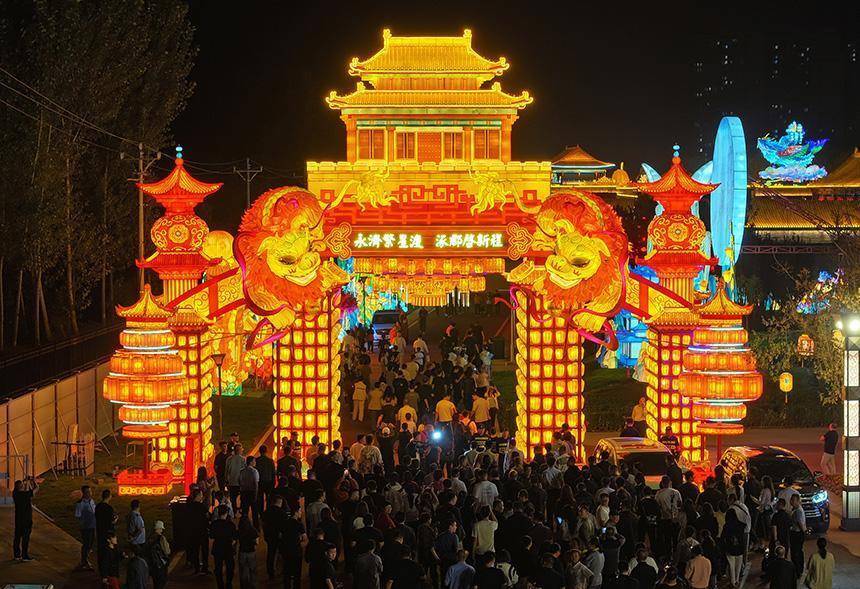 游客走进“永济繁星渡 涿郡启新程”花灯门楼。熊华明摄